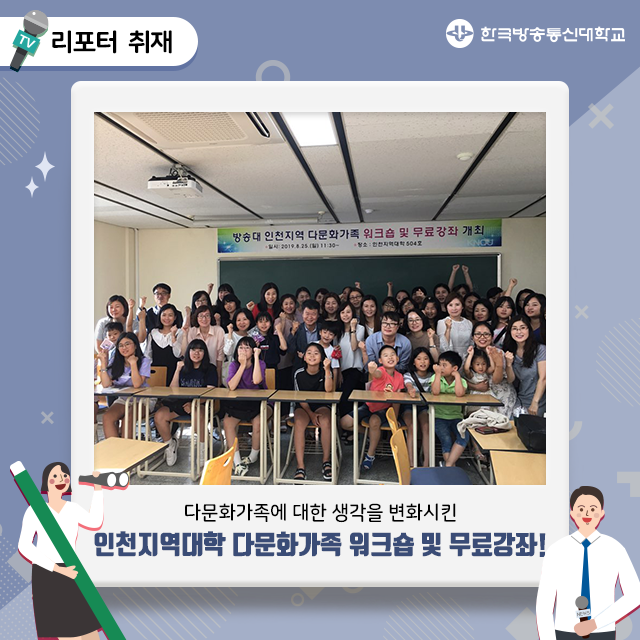 오늘 리포터는 인천지역대학에서 개최된 다문화가족 워크숍 및 무료강좌에 다녀왔습니다. 인천지역대학이라 접근성도 좋았습니다.