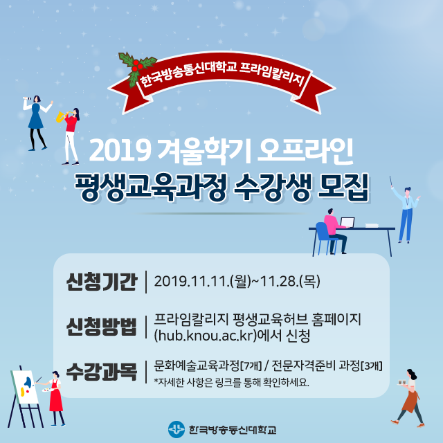 2019학년도 겨울학기 오프라인 평생교육과정 수강생을 모집합니다.