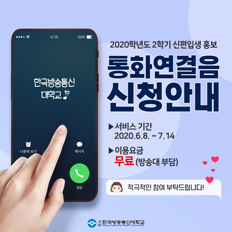 한국방송통신대가 2020년 통화연결음(비즈링) 서비스를 제공합니다.