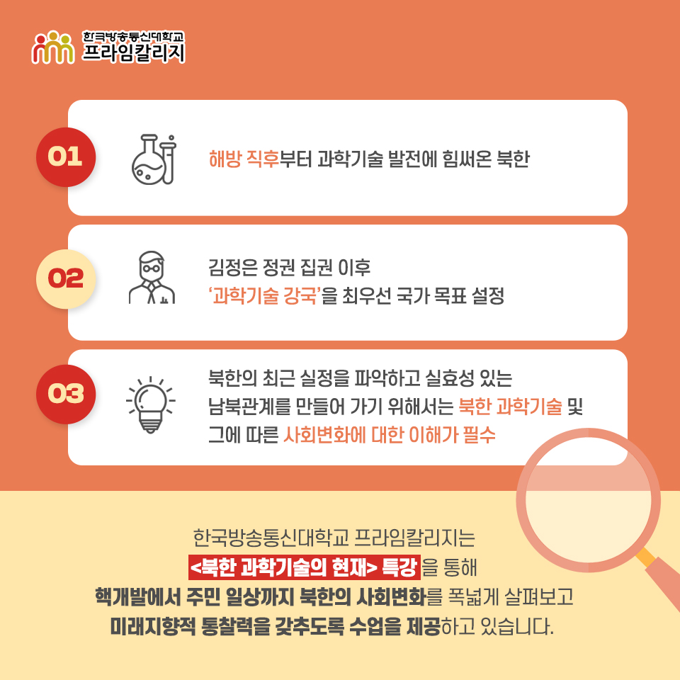 #방송대_프라임칼리지 에서 <북한 과학기술의 현재> 강의를 개설했습니다.