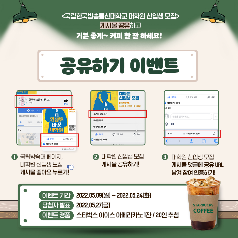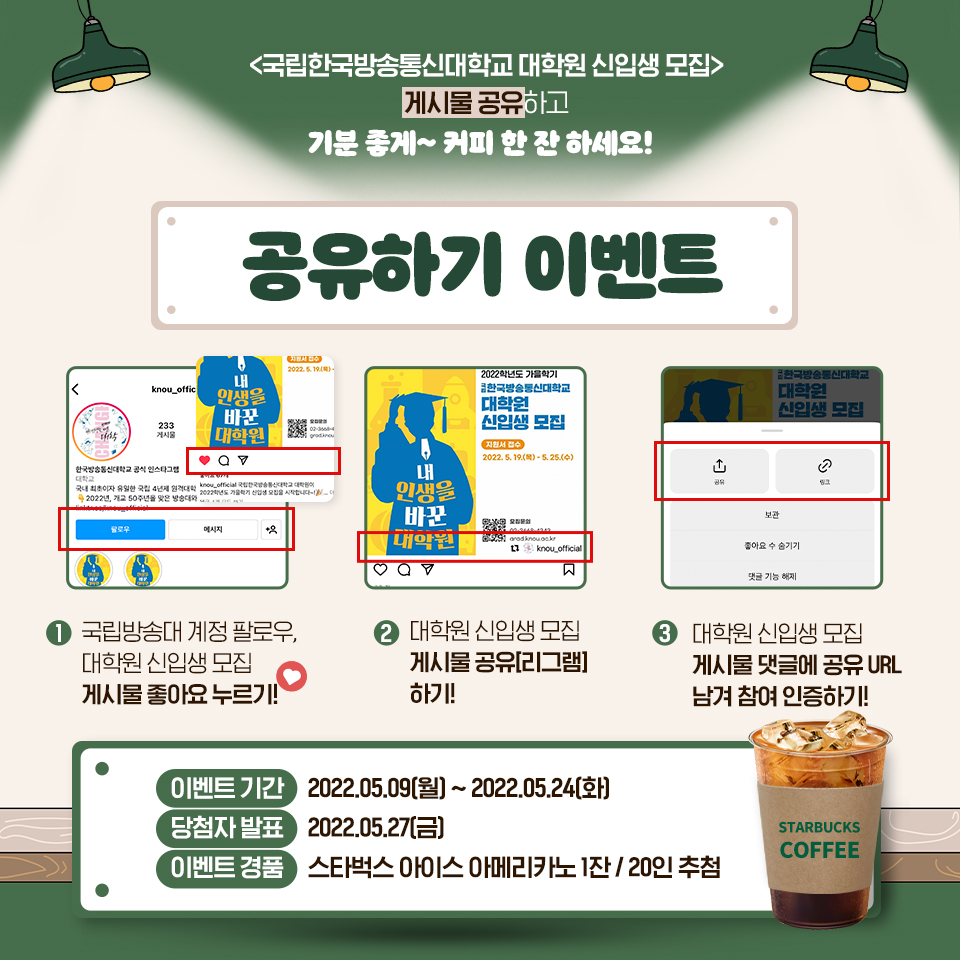 바로~! 국립방송대 대학원의 신입생 모집 게시물 공유 이벤트인데요.