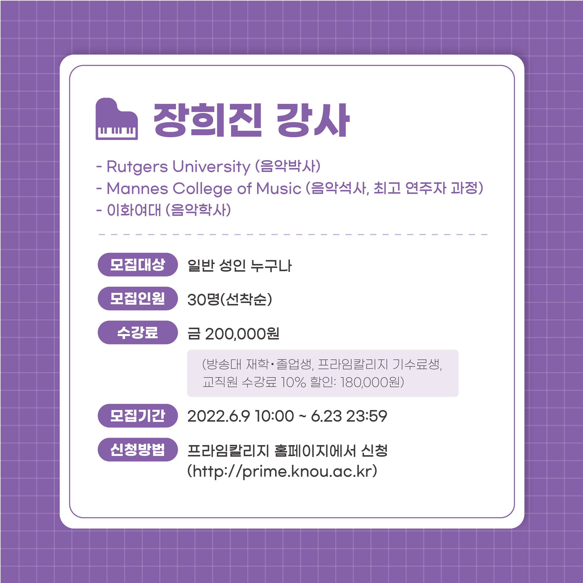 ☑ 신청방법 : 프라임칼리지 홈페이지에서 신청(http://prime.knou.ac.kr)