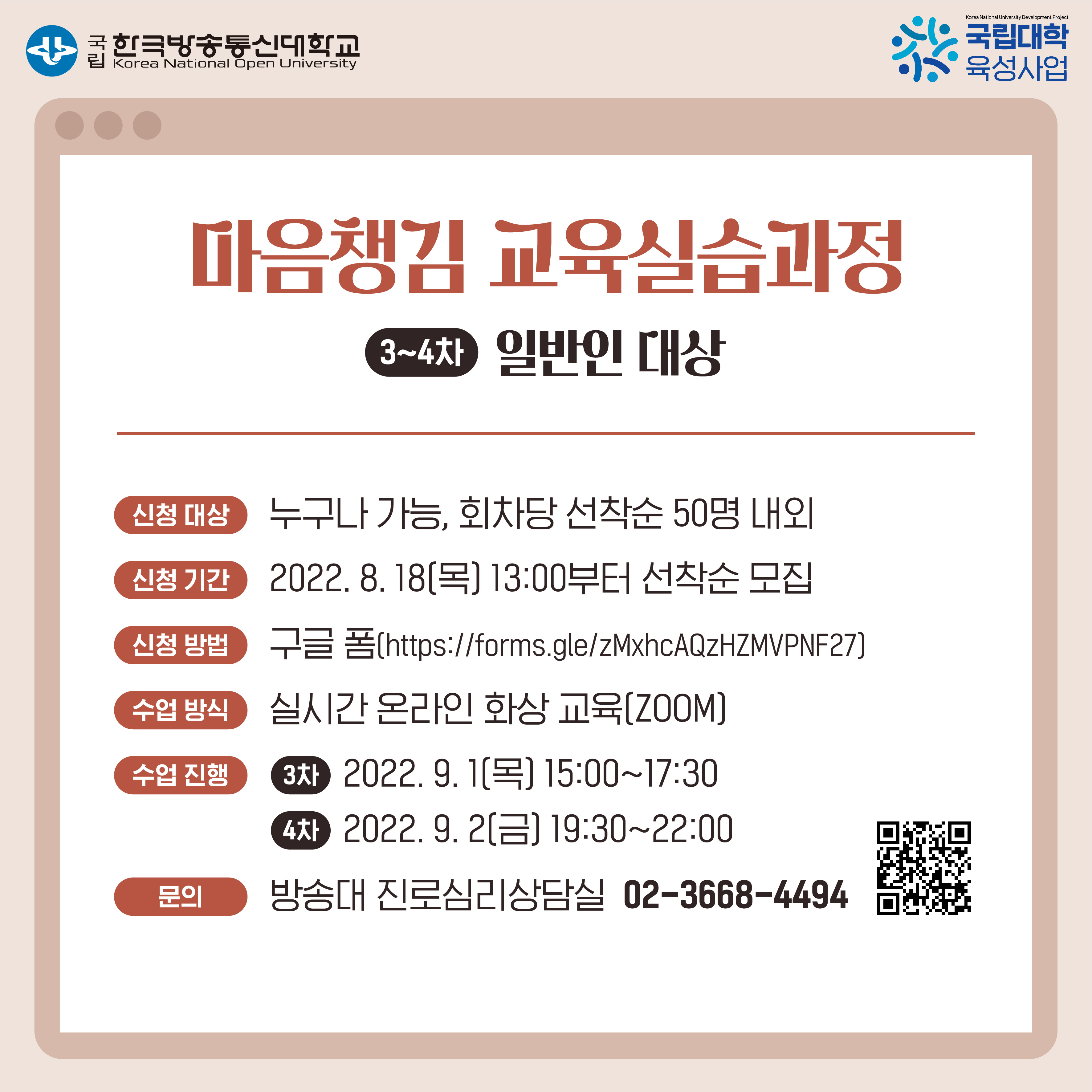 1~2차는 방송대 재학생 대상, 3~4차는 일반인 누구나 신청 가능하니