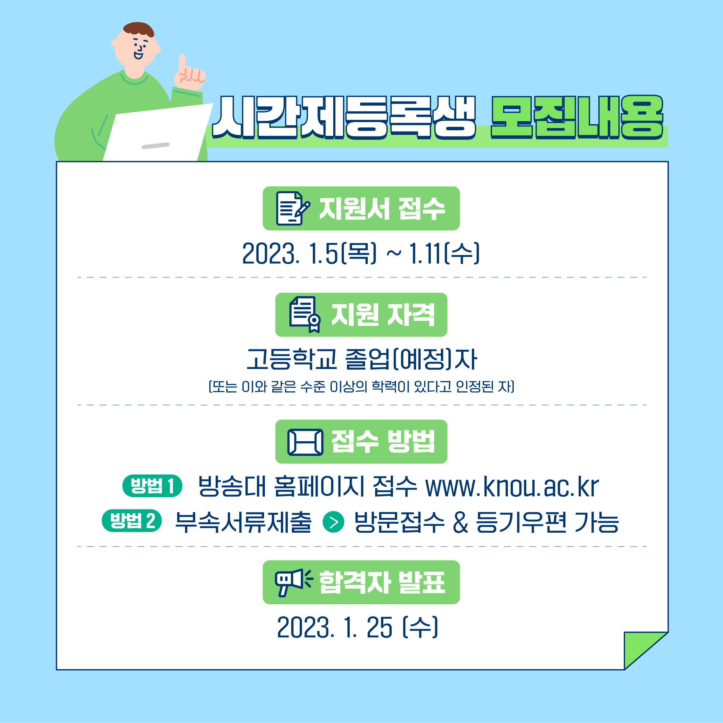 방송대가 2023학년도 1학기 시간제등록생을 모집합니다!